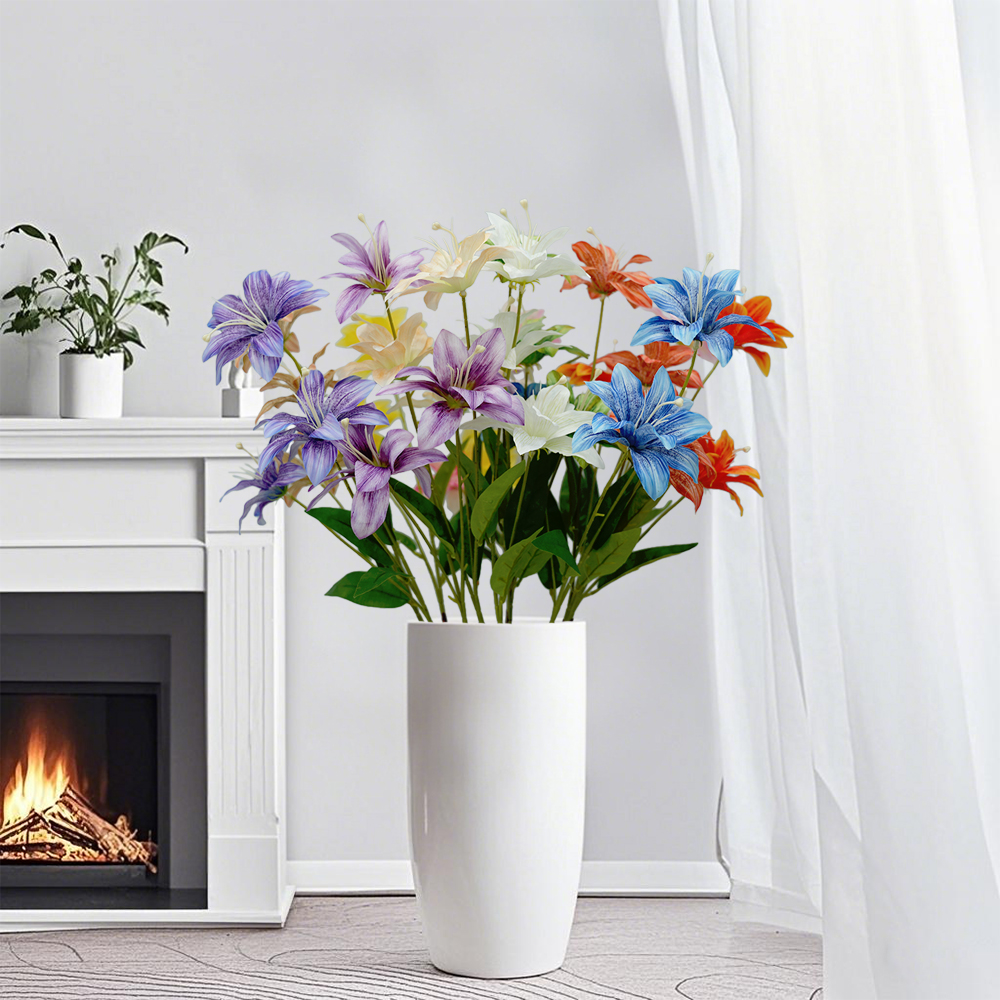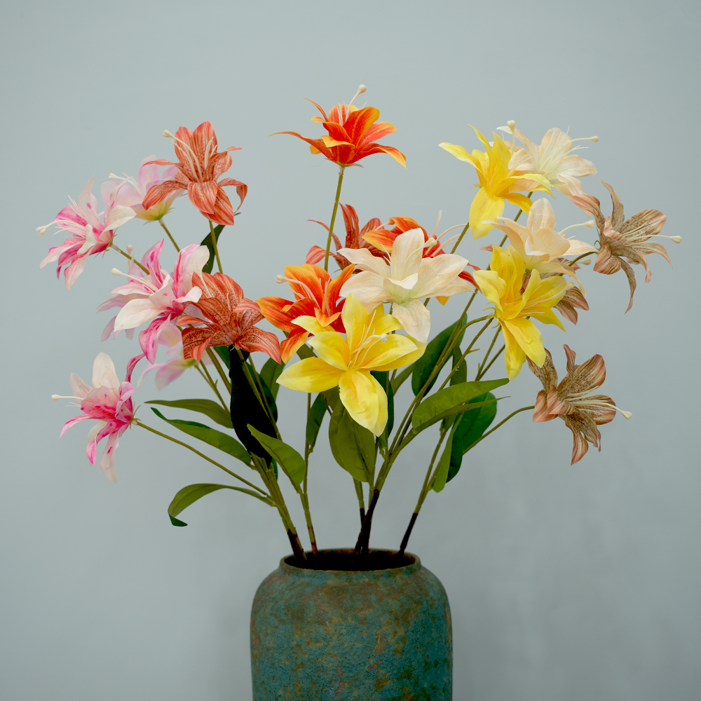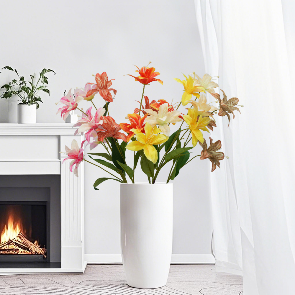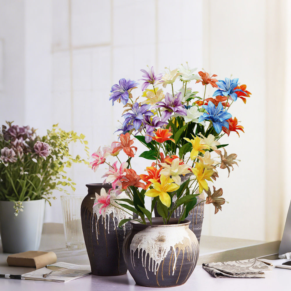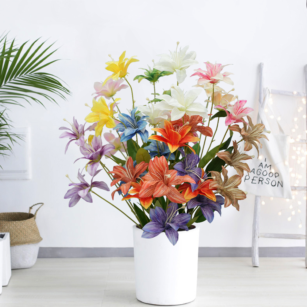 3heads lily artificial flowers home decoration Multilayer Lilies floral arrangement props flame flower hot pink wedding flowers