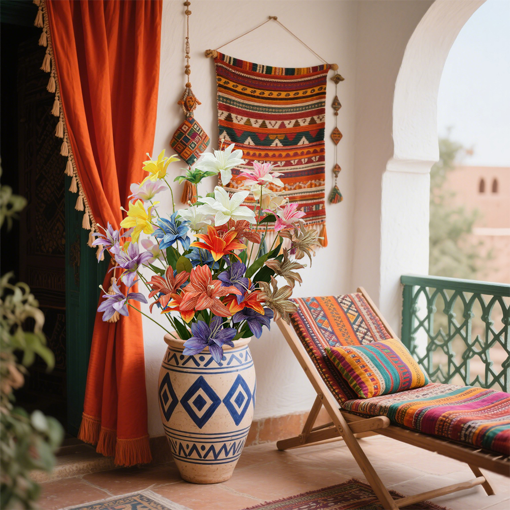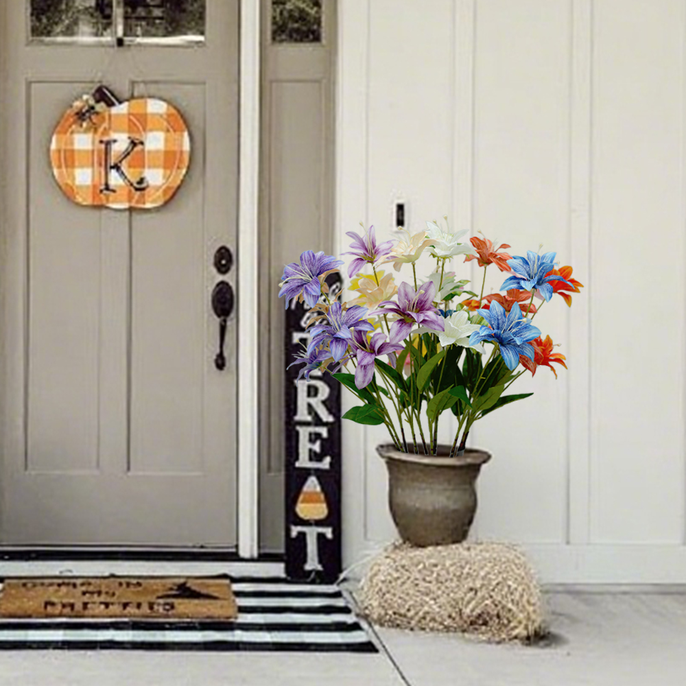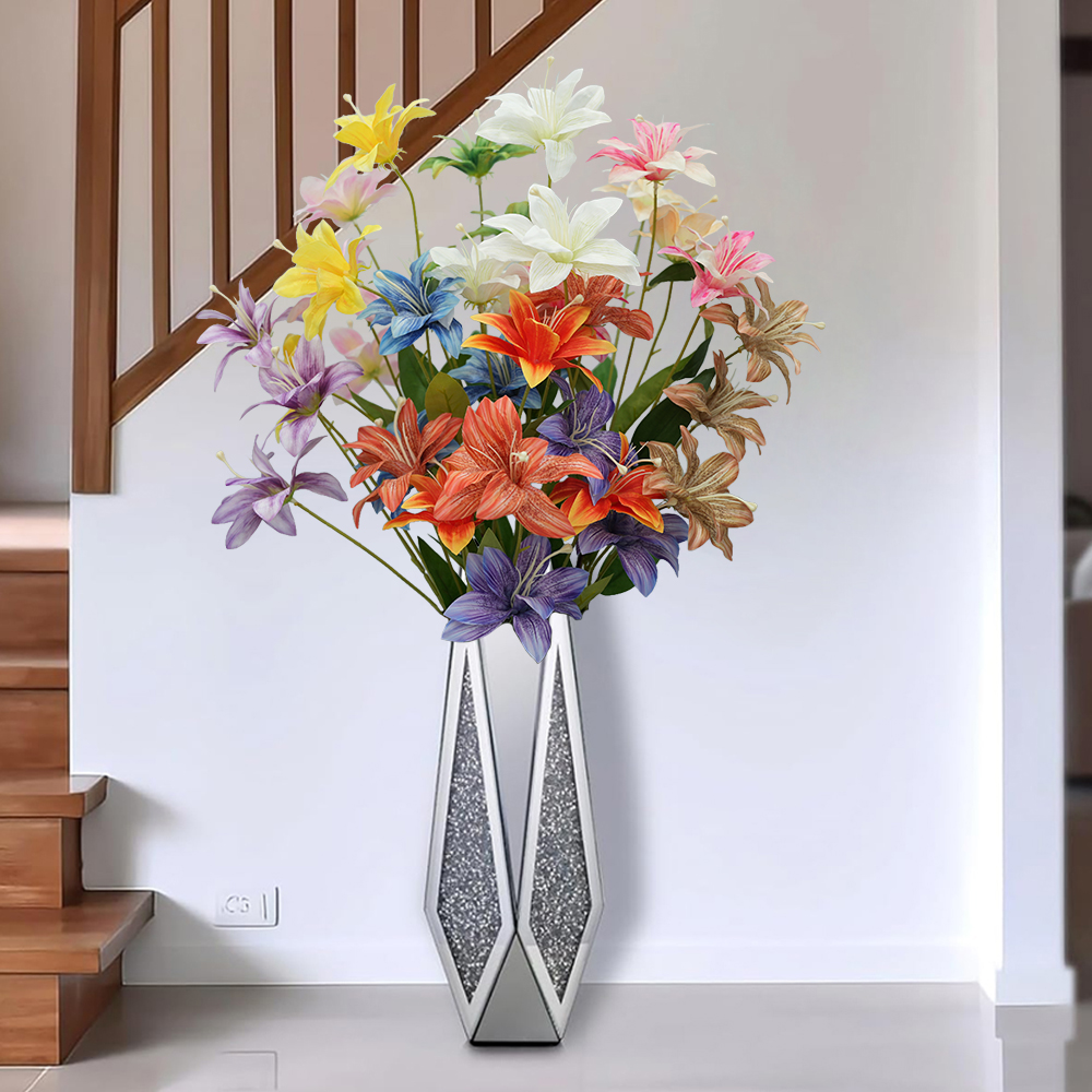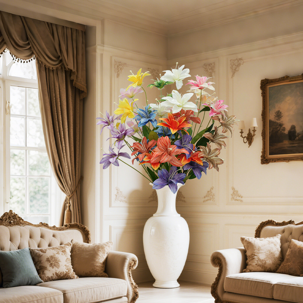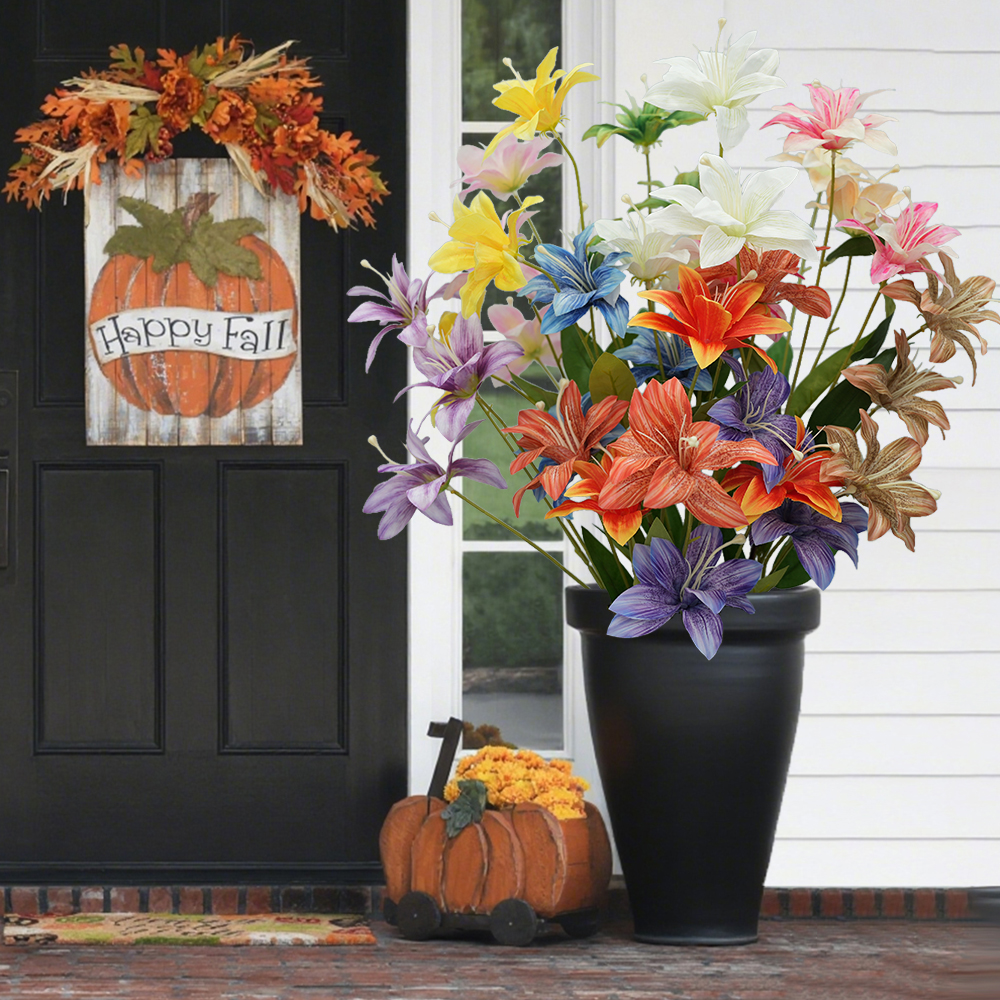 3heads lily artificial flowers home decoration Multilayer Lilies floral arrangement props flame flower hot pink wedding flowers