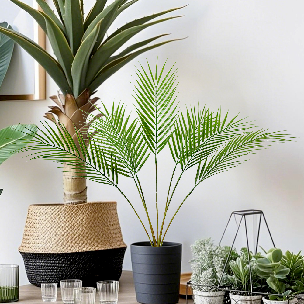 7Leaves Large Artificial Palm Tree Tropical Fake Plant Green Plastic Palm Leaf Branches Suitable for Home Garden Deco