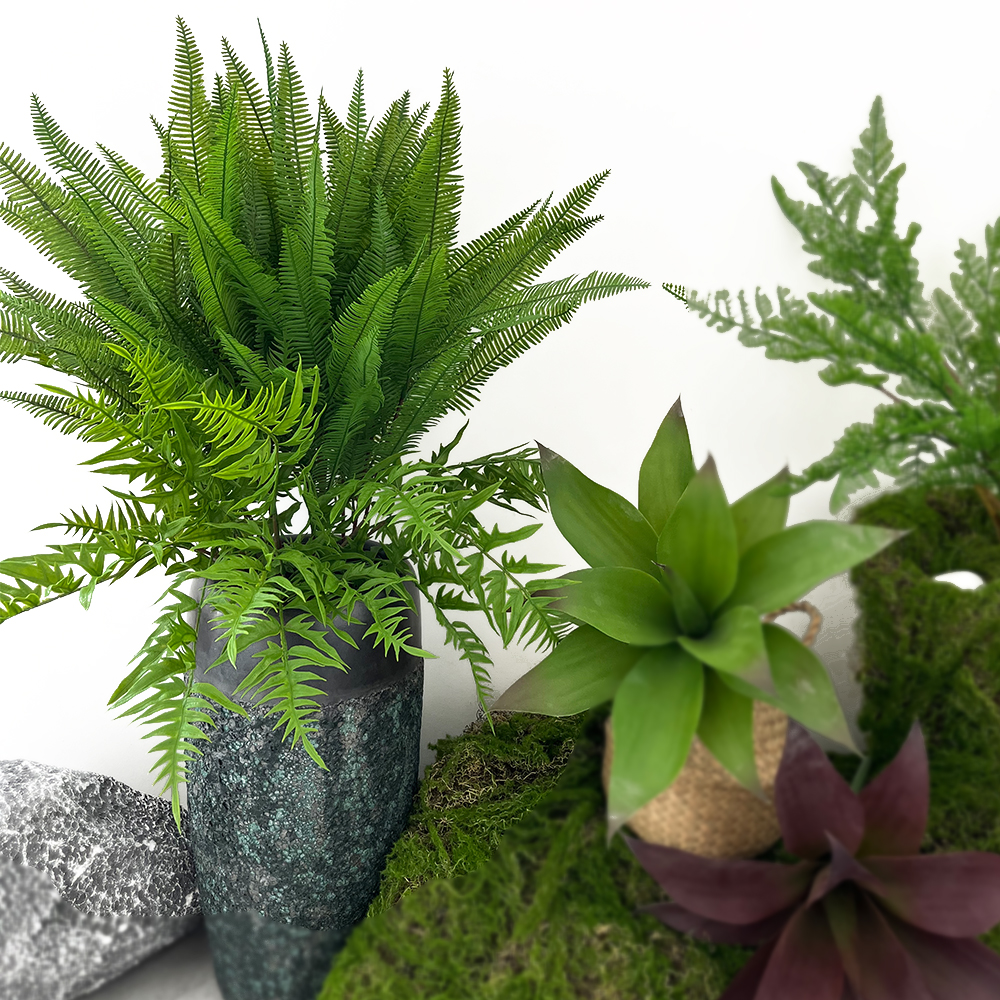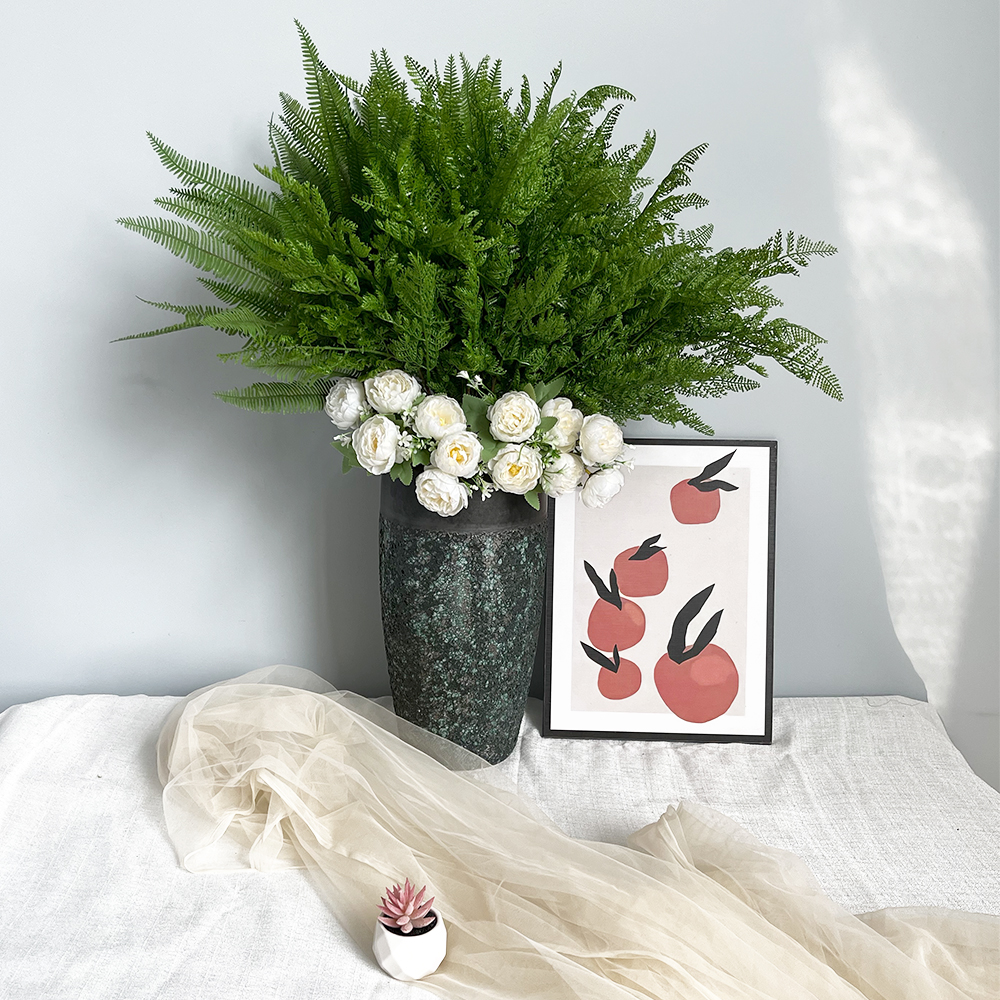 Artificial green plants with high branches and feathers are used to plant ferns, wedding home flowers, green plants, potted ferns, photography props and leaves