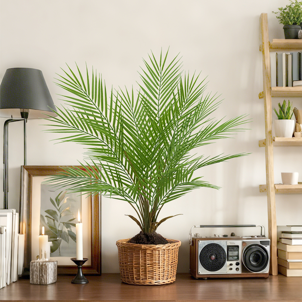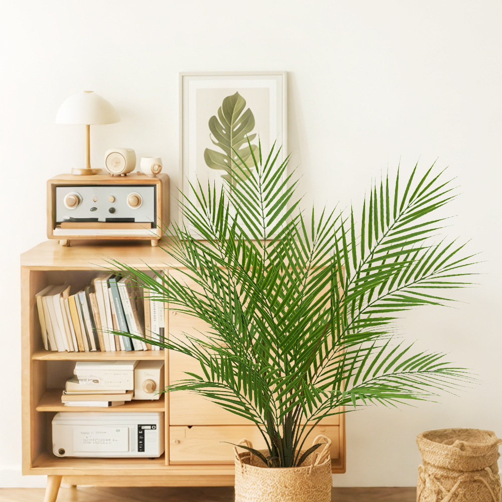 Artificial palm tree tropical false plant green plastic palm leaf bundle is suitable for home garden decoration