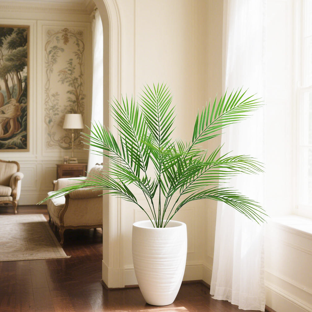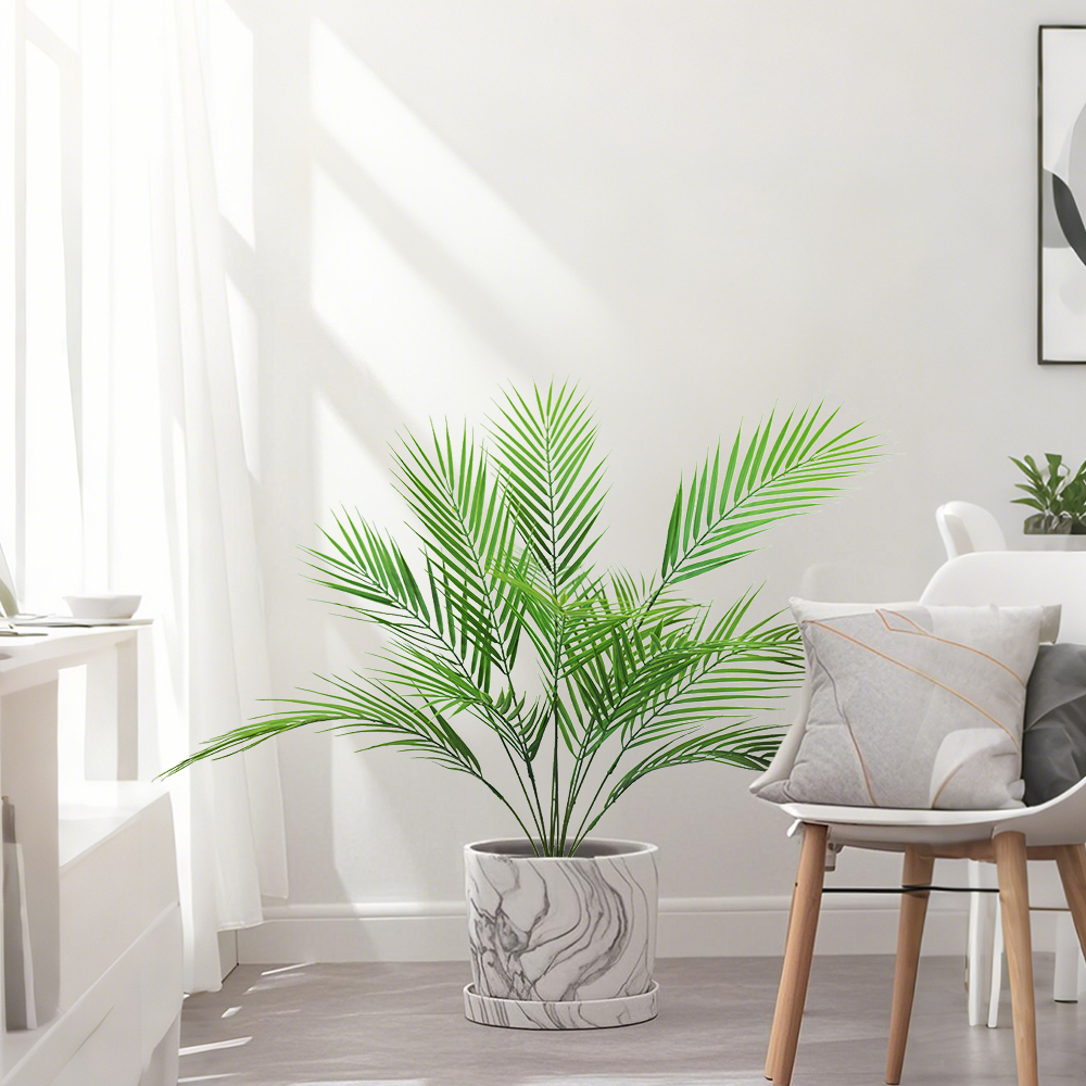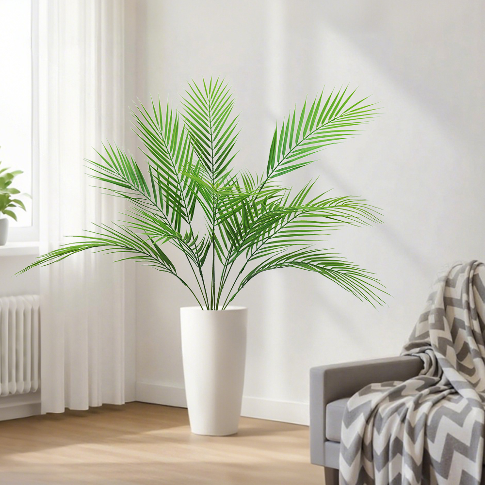 Artificial Palm Tree Tropical Green Leaves Fake Plants Plastic Faux Tree Branch for Home Kitchen Decora