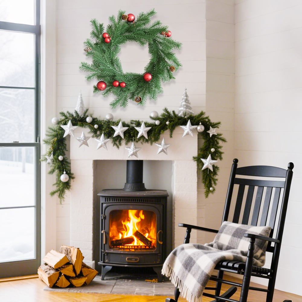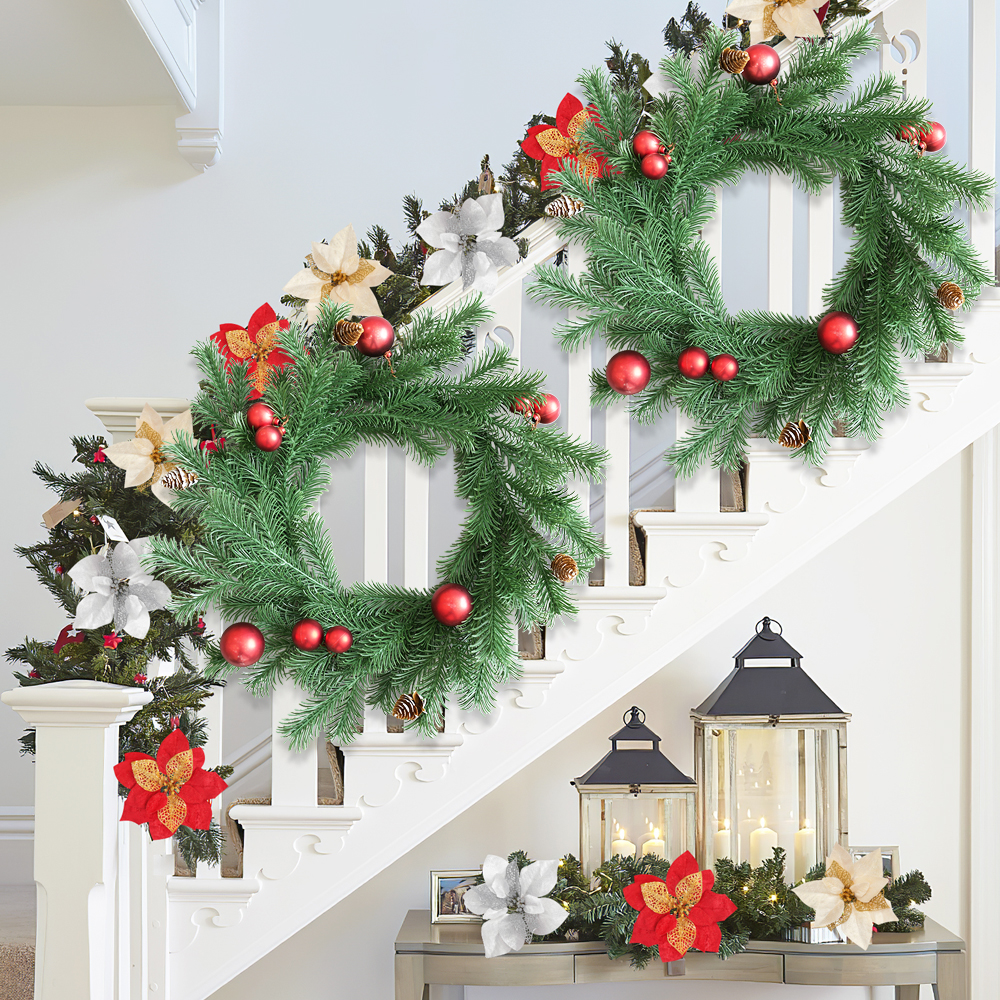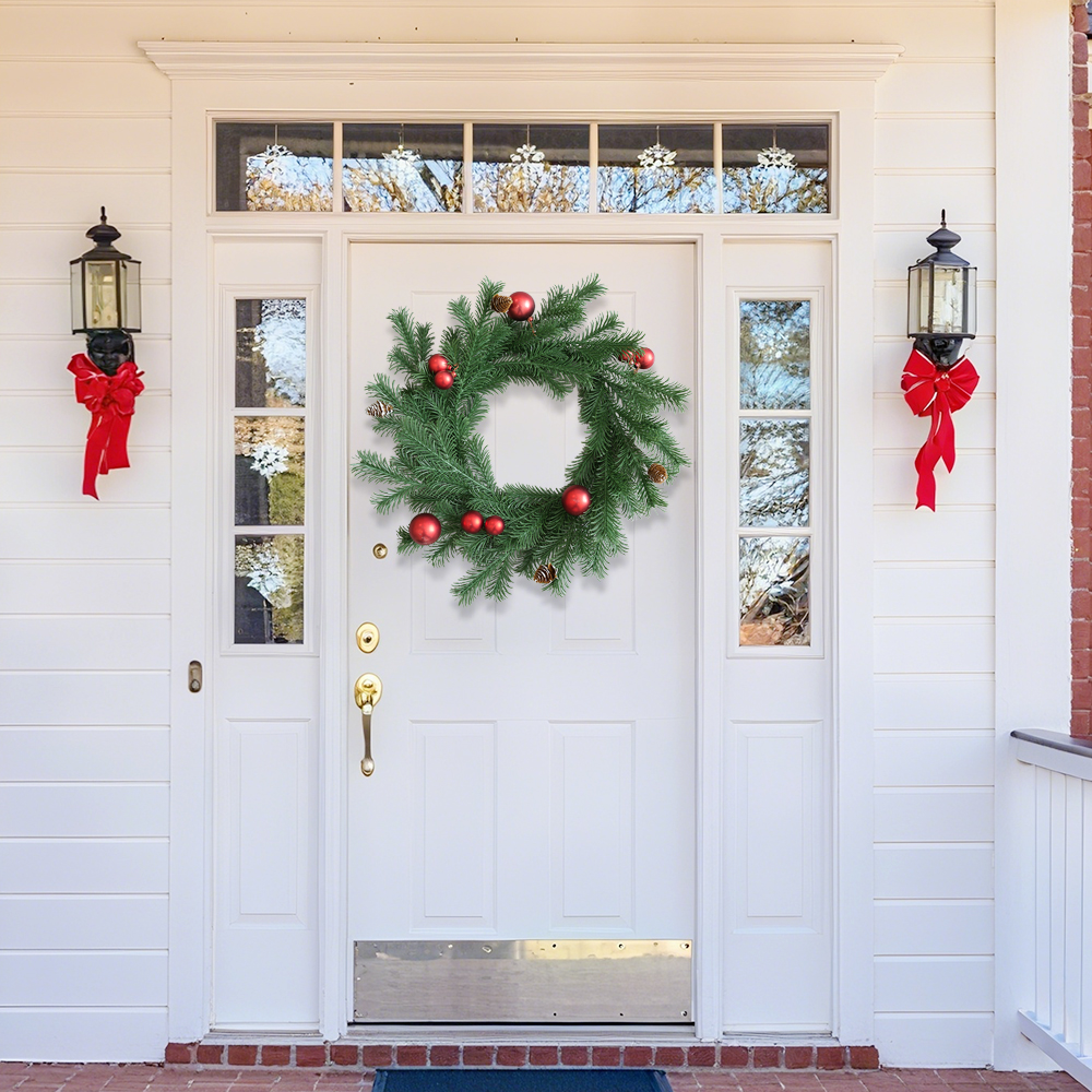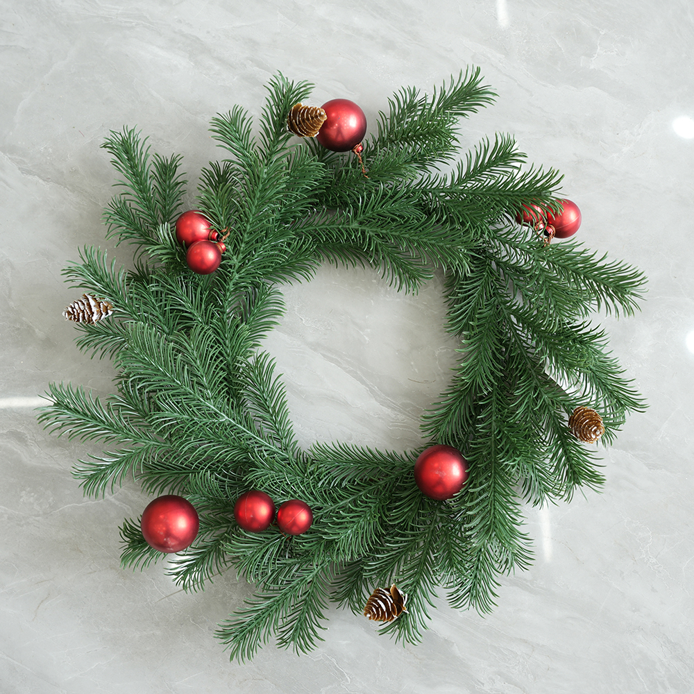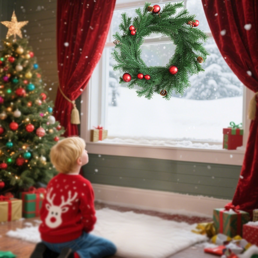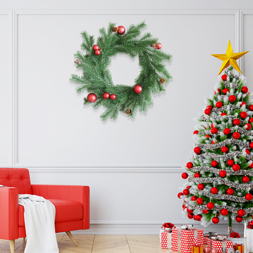 Christmas Wreath Red Ball Flower Garland, Xmas Ornament Window Wall Hanging Decor Navidad Garland