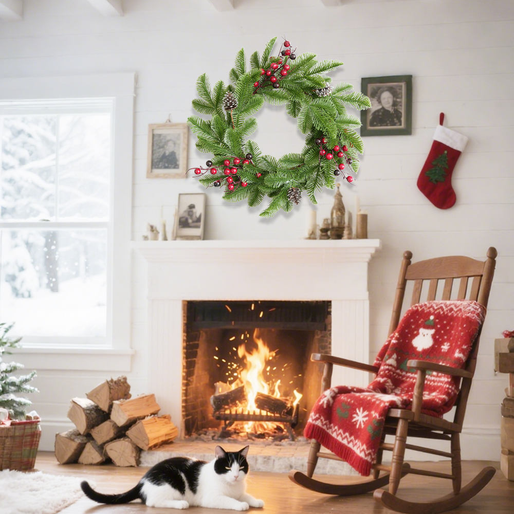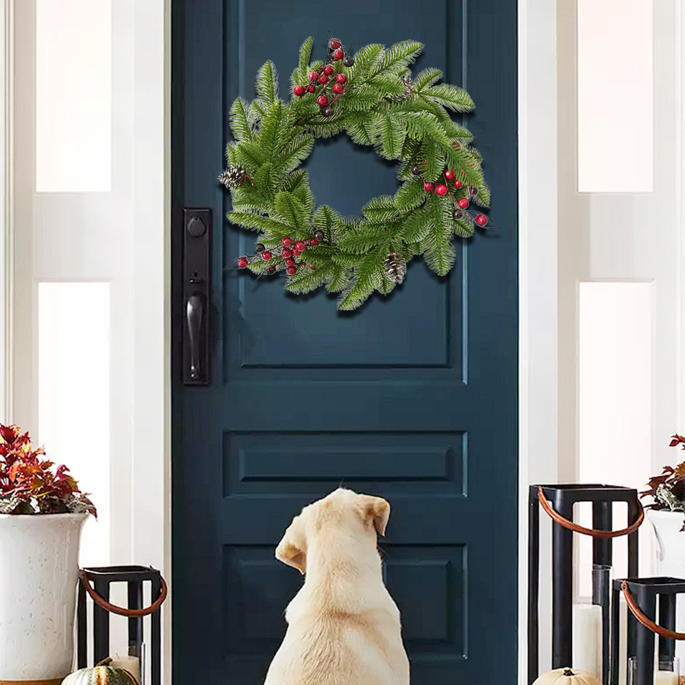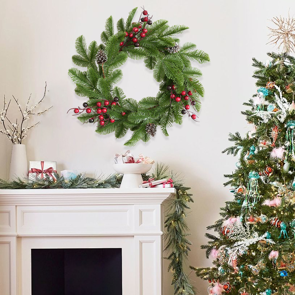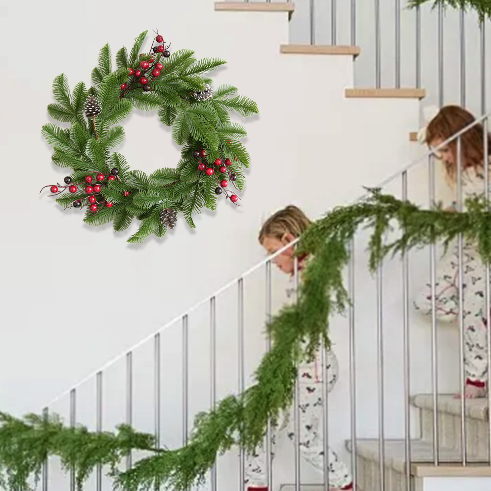 Christmas Wreath Red Pinecone Cone Flower Garland Merry Christmas Decoration Xmas Hanging Ornament Pendant