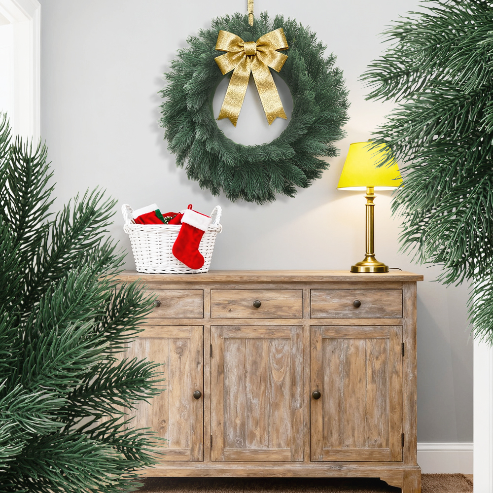 Simulation of Christmas green garland, fake pine needle garland used for home Christmas decoration of doors, walls and windows