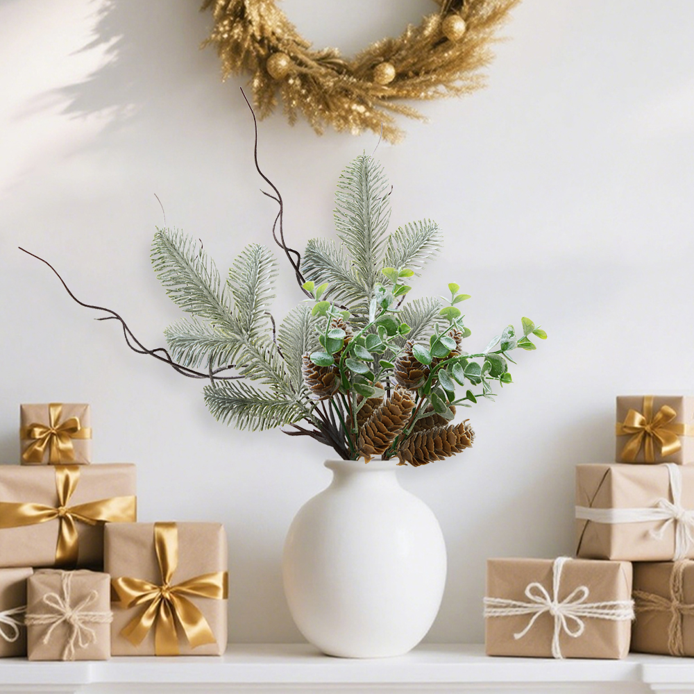 Snowflake Pine Cone Berry Branch Christmas Artificial Red Berry Pine Needle DIY Wreath Fake Flowers Home Party Decor