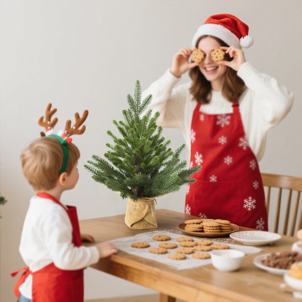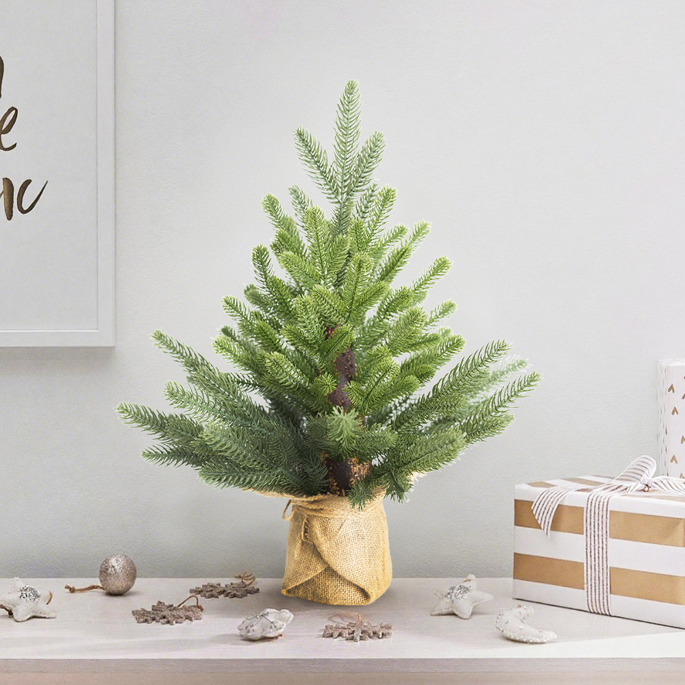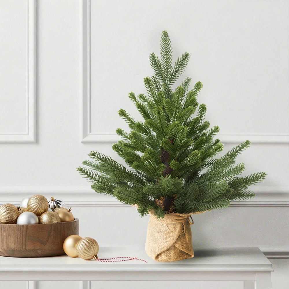 Tabletop Christmas Tree with Linen Base Mini Artificial Christmas Tree Miniature Xmas Pine Tree Festival Scene Layout Props